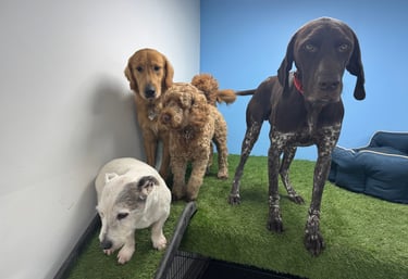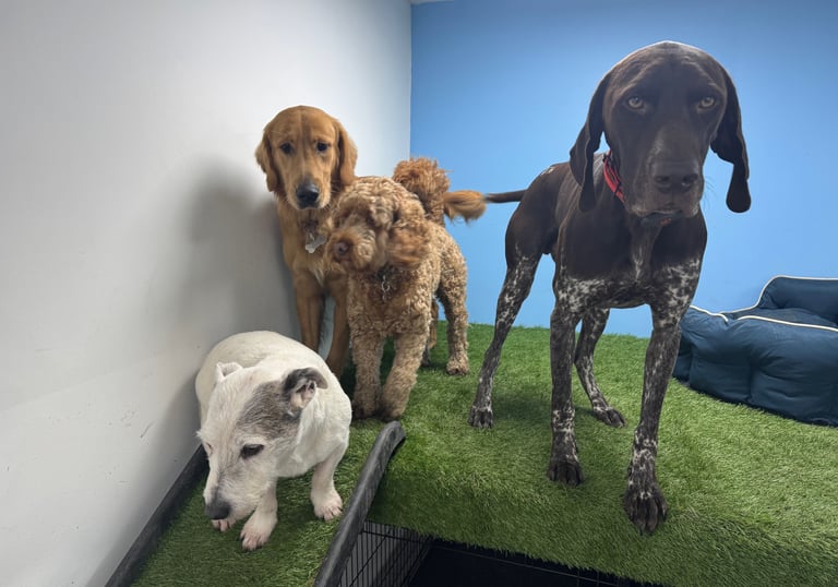 At our daycare, we combine expert training with structured socialisation and enrichment, so every dog leaves happier, more balanced, and better behaved than when they arrived. Our goal is to make sure dogs get the fun and freedom they love — while also reinforcing the good habits that make life at home even better